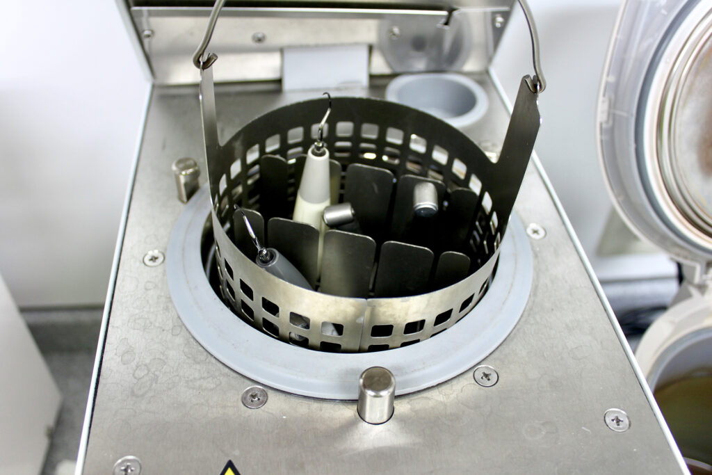 使用済みの器具は手洗い、薬液消毒のあと大型の超音波洗浄機で洗浄されます。