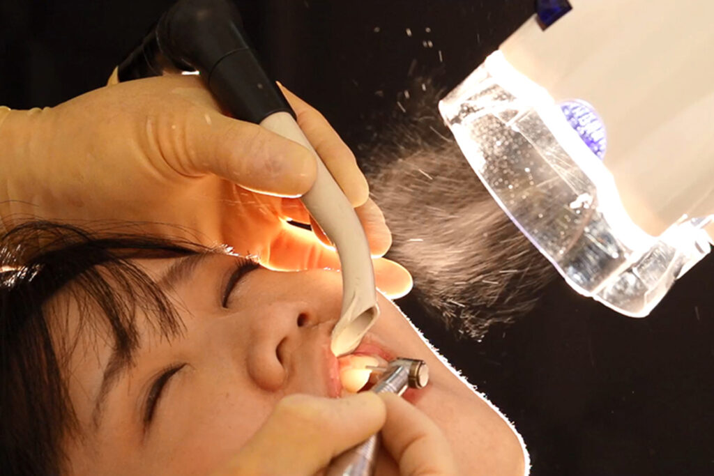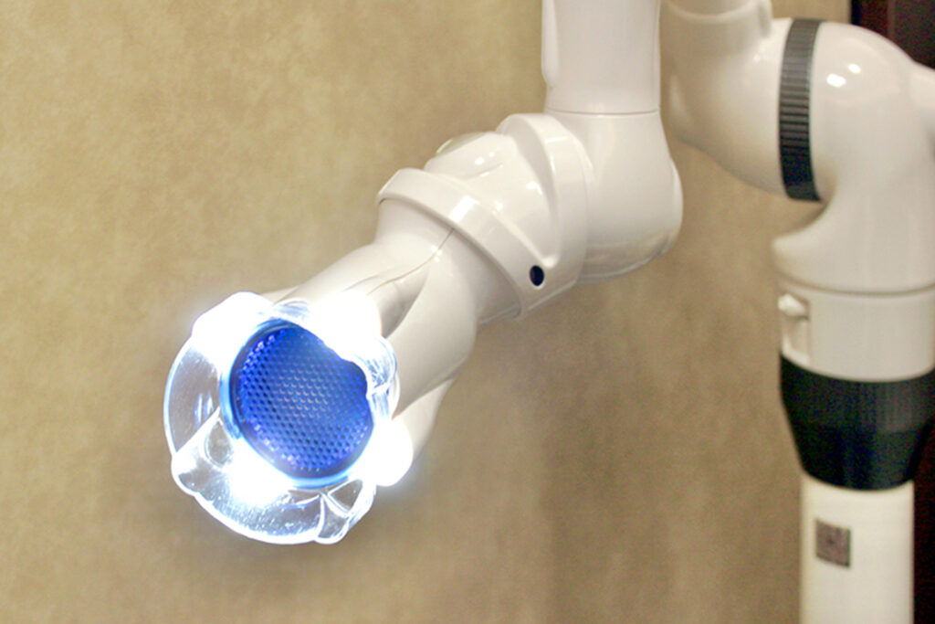 歯を削るときには、目に見えないほどの細かな水や粉塵が飛び散ります。この水や粉塵が患者さんの顔にかかったり、吸い込んだりすることを防ぐ為、当院では開院以来「フリーアーム」を20年以上前から導入しています。フリーアームは強力な吸引で治療時に発生する細かい粉塵を吸い取り、安心でクリーンな院内環境を作っています。